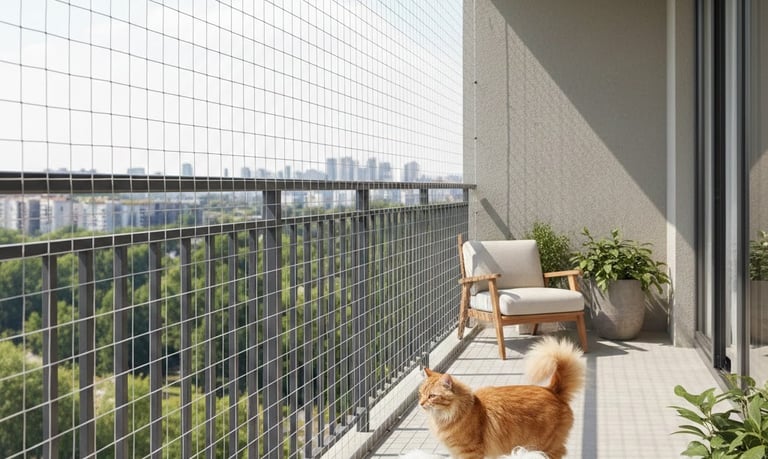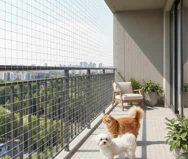 Our pet safety nets are specially designed to prevent cats, dogs, and other small pets from slipping through open areas such as balconies, windows, staircases, and terraces. With professional installation and high-quality materials, we ensure complete peace of mind for pet owners.