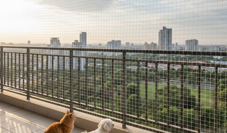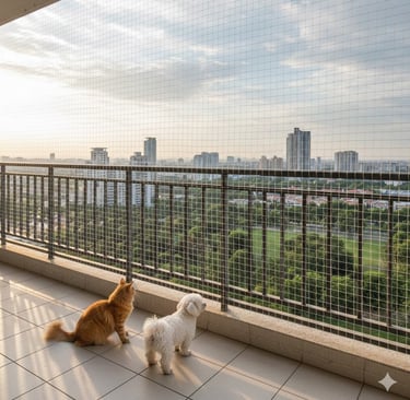 Pets are naturally curious and playful. Cats often climb railings, and dogs may lean or jump toward birds or moving objects. Open balconies and windows can quickly become dangerous without proper protection. Installing pet safety nets eliminates the risk of accidental falls and injuries while still maintaining visibility, airflow, and ventilation.